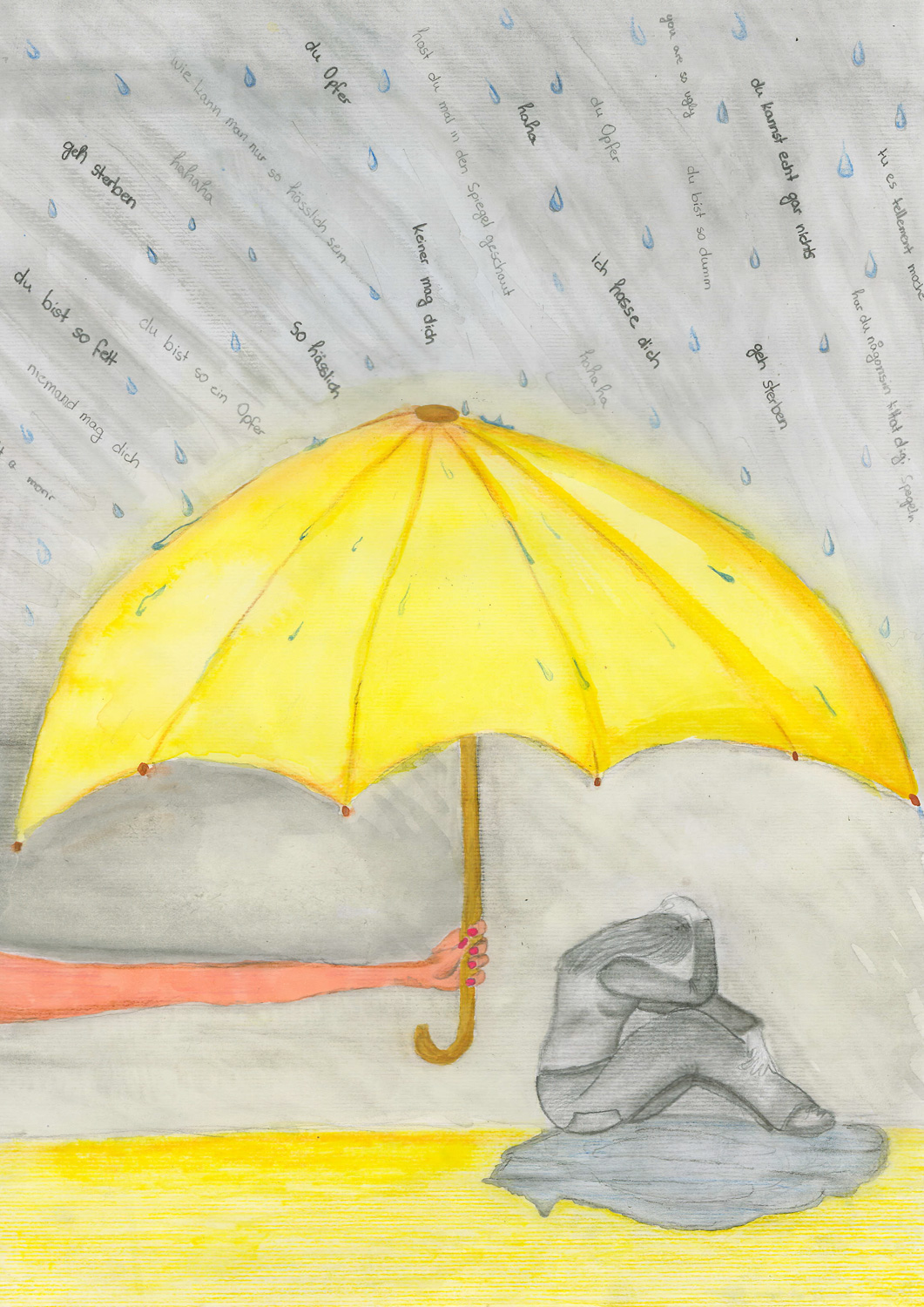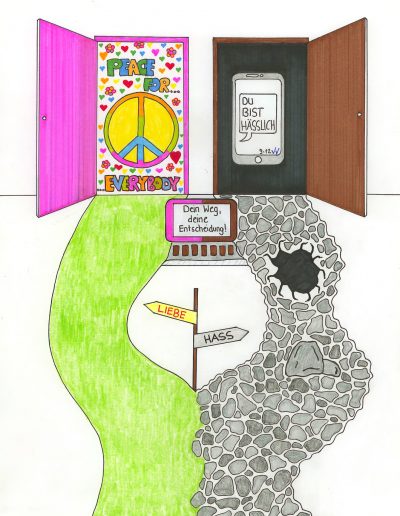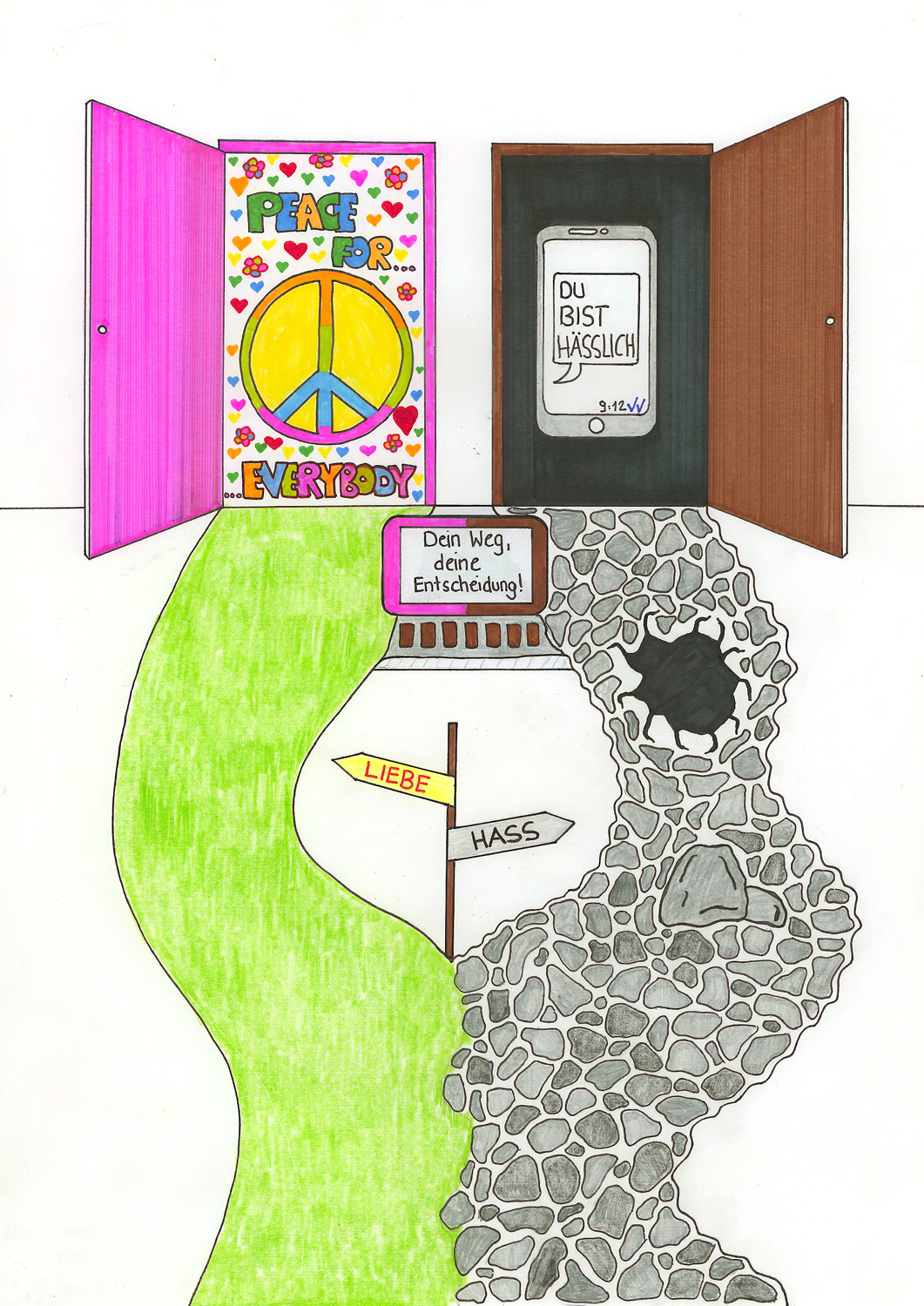 Aufgabe: Freie Umsetzung verschiedener Themen: „Hier bin ich Mensch – hier darf ich´s sein!“ „Klare Stimme  – offenes Ohr“ „Gewalt ist keine Option“
