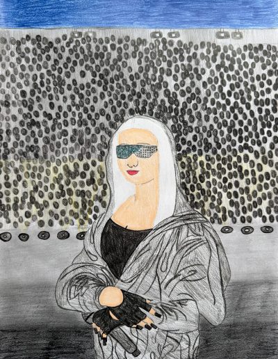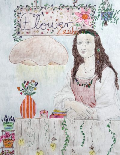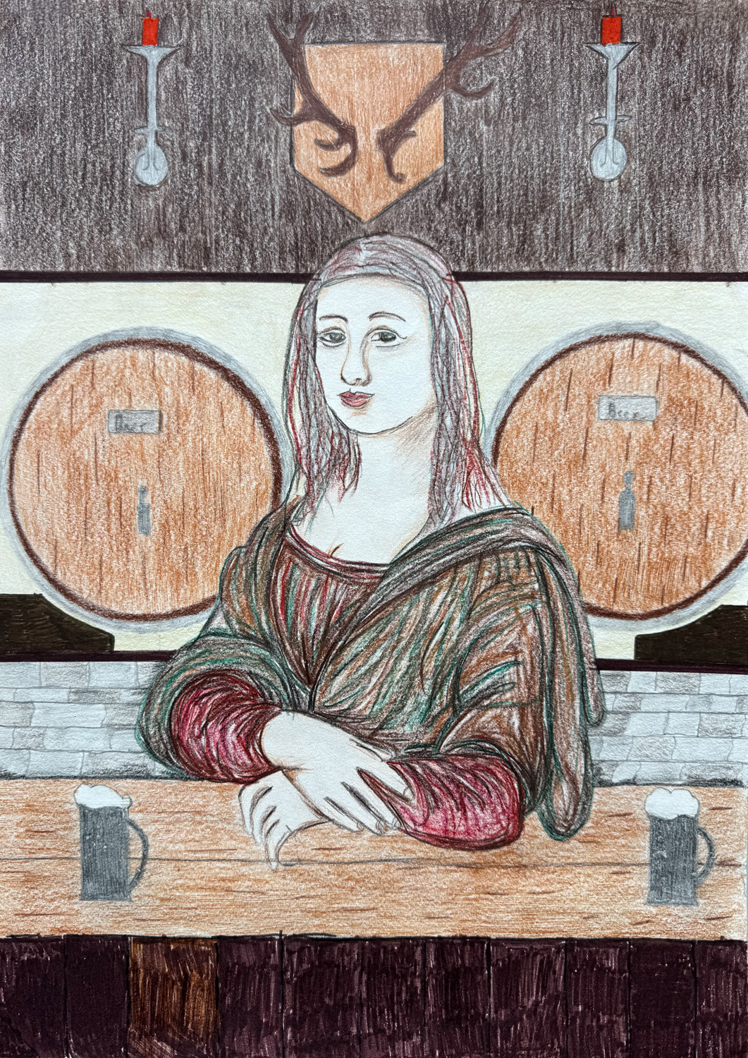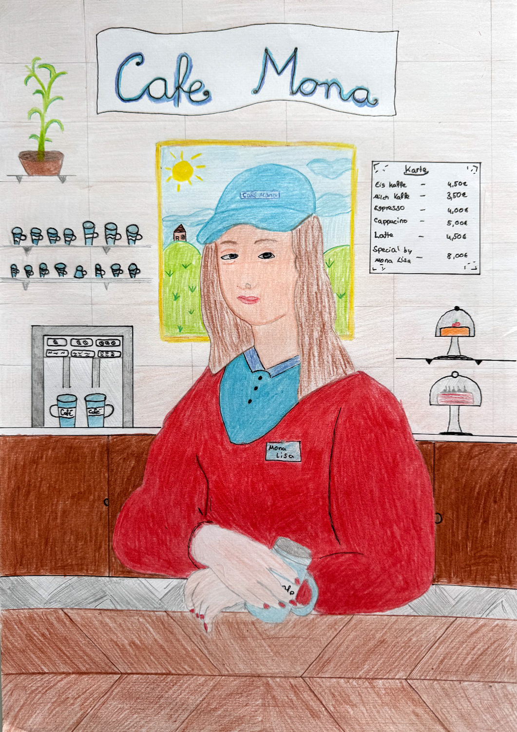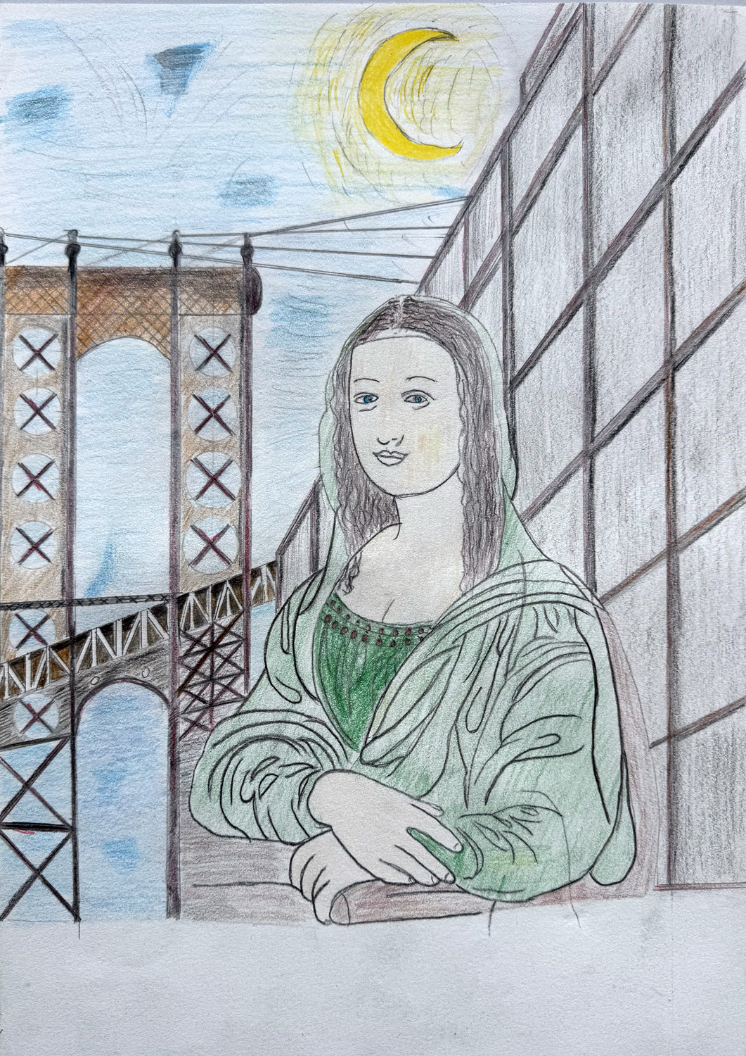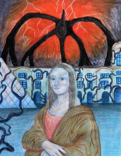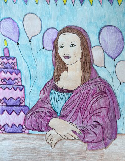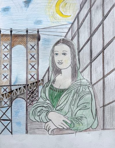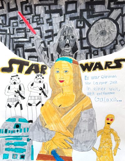 Aufgabe: Auf der Grundlage einer Umrisskopie des Originals sollte das Portrait Mona Lisas neu interpretiert werden