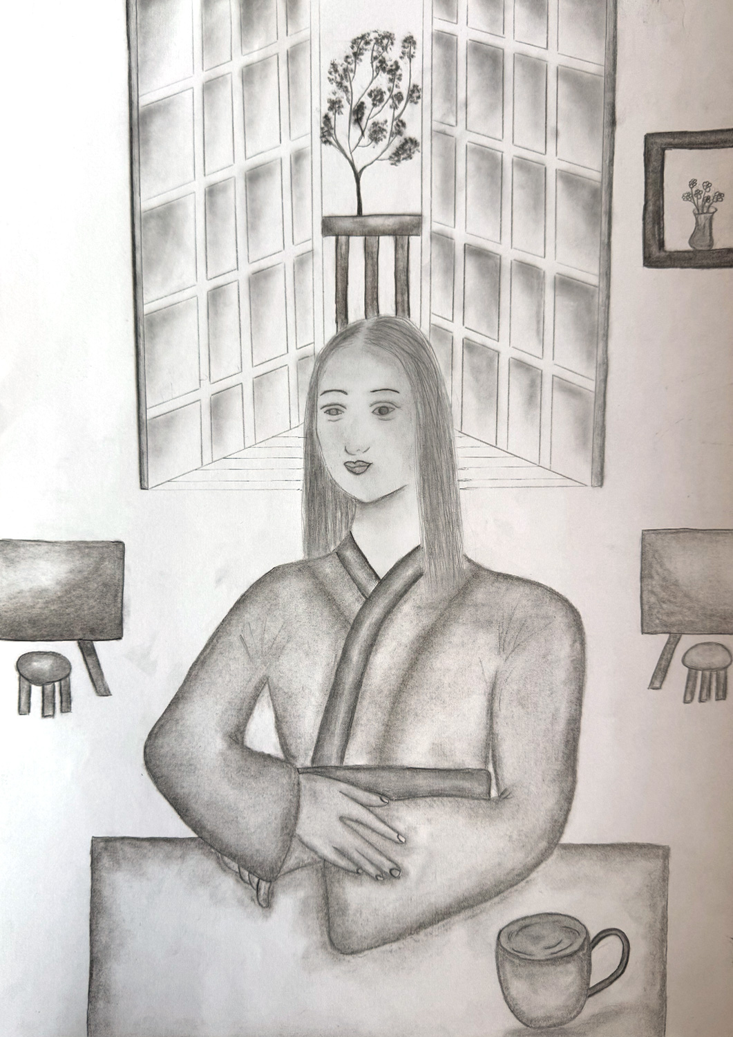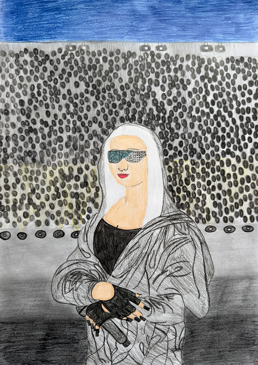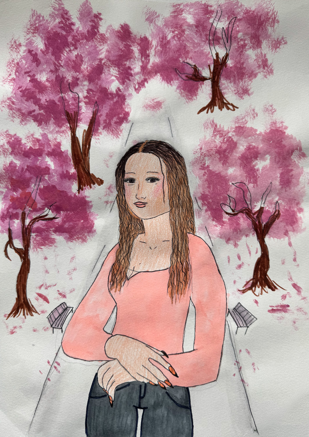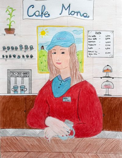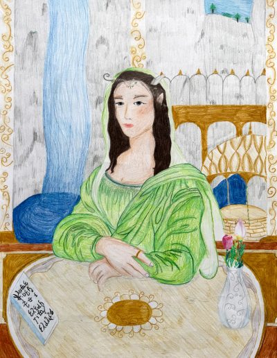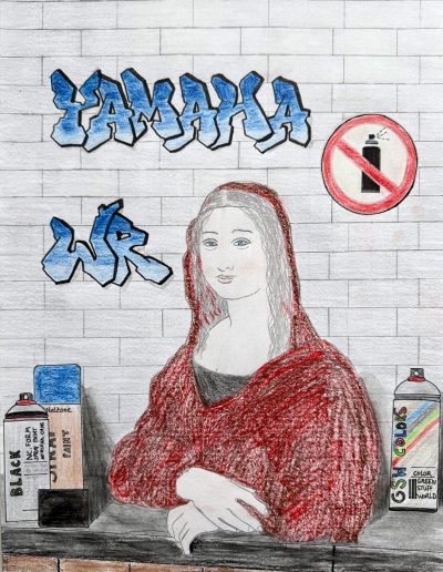 Aufgabe: Auf der Grundlage einer Umrisskopie des Originals sollte das Portrait Mona Lisas neu interpretiert werden