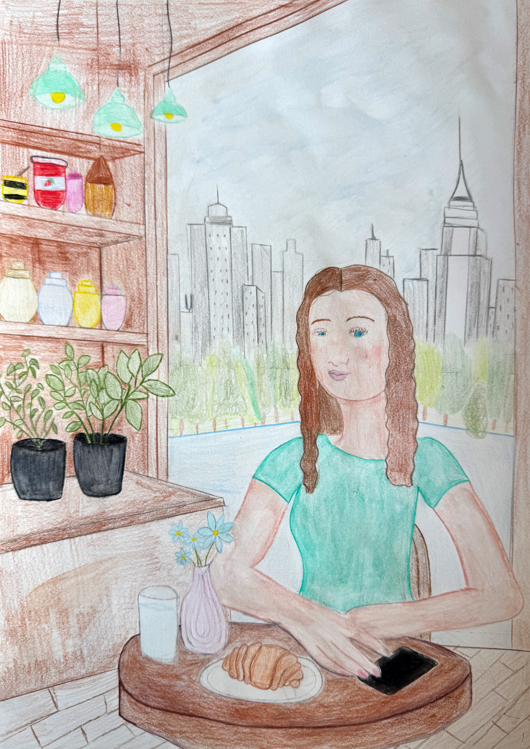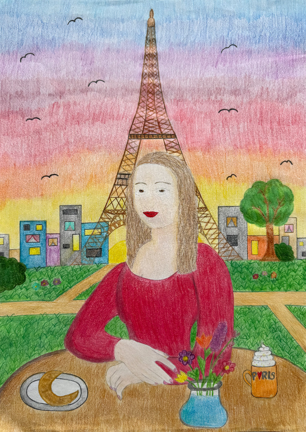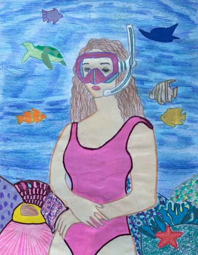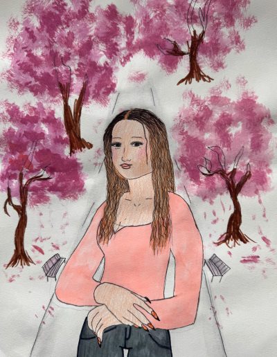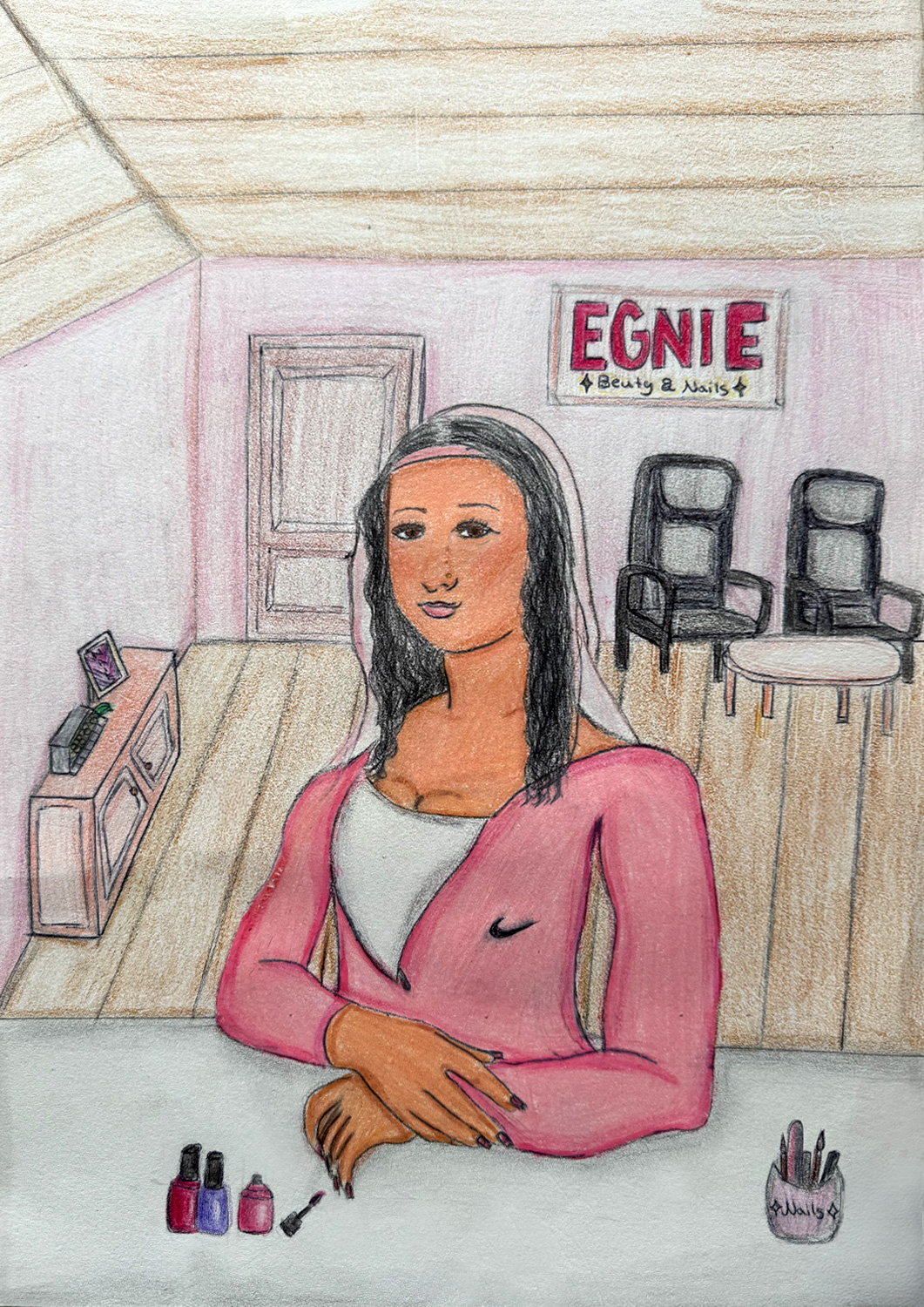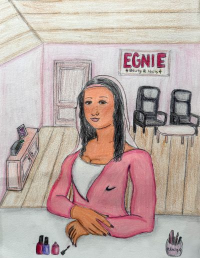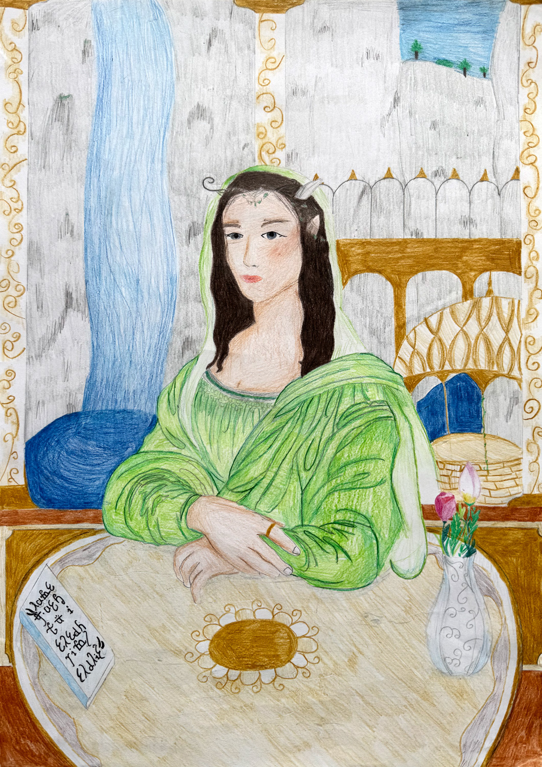 Aufgabe: Auf der Grundlage einer Umrisskopie des Originals sollte das Portrait Mona Lisas neu interpretiert werden